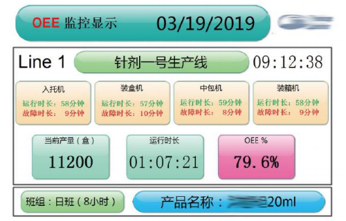 · 实时计算相关OEE效能,并显示在中控大屏中;